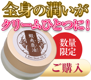 北海道のエゾシカから抽出した天然保湿オイルを贅沢に配合!強い乾燥肌や乾燥によるひび割れ、あかぎれなどにオススメです。 シカ脂は人の皮脂に近い高い融点(オレイン酸)が特徴で、持続性のある保湿力と強いワックス効果が期待できます。